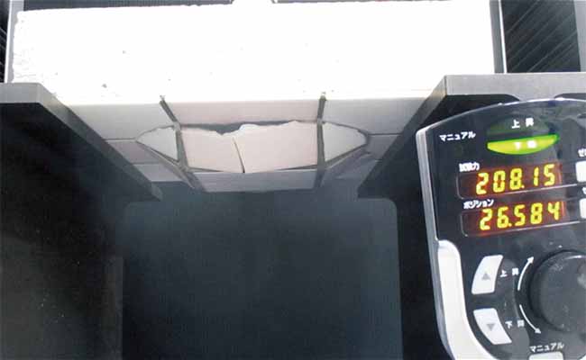 1 m²あたり約 3.3tの荷重に耐えられる※強靭な塗膜であることを実証しました。※(条件)押し抜き強度 0.84N/mm²、押し抜きコア100 mmφ、塗膜厚み0.3 mm、SUV試験により施工後 40 年相当の塗膜を想定(伸び保持率 30.3%)