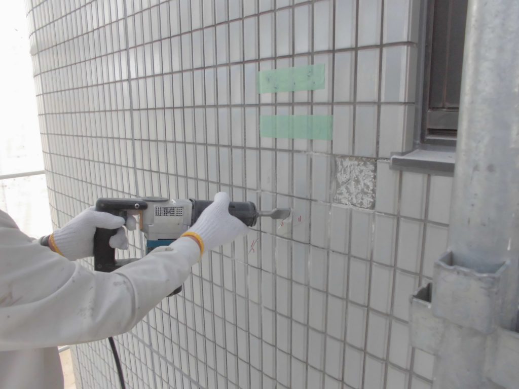 調査後、古くなった外壁タイルを丁寧に取り外します。