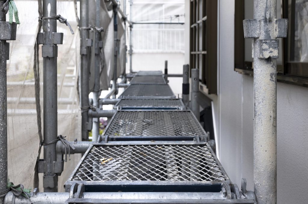 現在の外壁タイルの状態や、劣化具合をチェックし、浮きやヒビの有無を確認。作業中の安全対策を講じたり、必要に応じて足場を設置します。