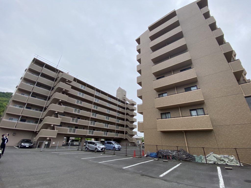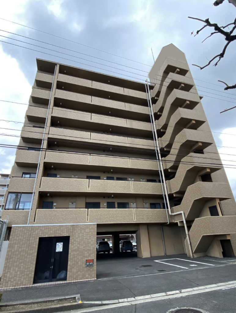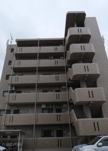 高松市内のマンション外壁タイルにKFタイルホールド施工を行いました。